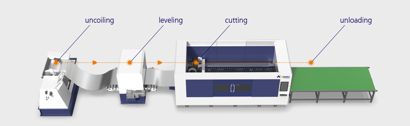 금속 레이저 절단 장비는 금속 코일을 직접 가공하여 생산 과정에서 코일 풀기, 레벨링, 공급, 절단 및 언로딩의 통합 생산 라인을 실현합니다.